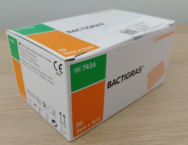 Bactigras, medicazione di contatto a bassa aderenza, è indicato per il trattamento di tutte le ferite esposte a rischio di infezione. Su ferite già infette può essere utilizzato in associazione ad antibatterici topici o sistemici. La medicazione è disponibile in più misure, inoltre può essere facilmente tagliata in tutte le forme desiderate mantenendola tra le due carte protettive.