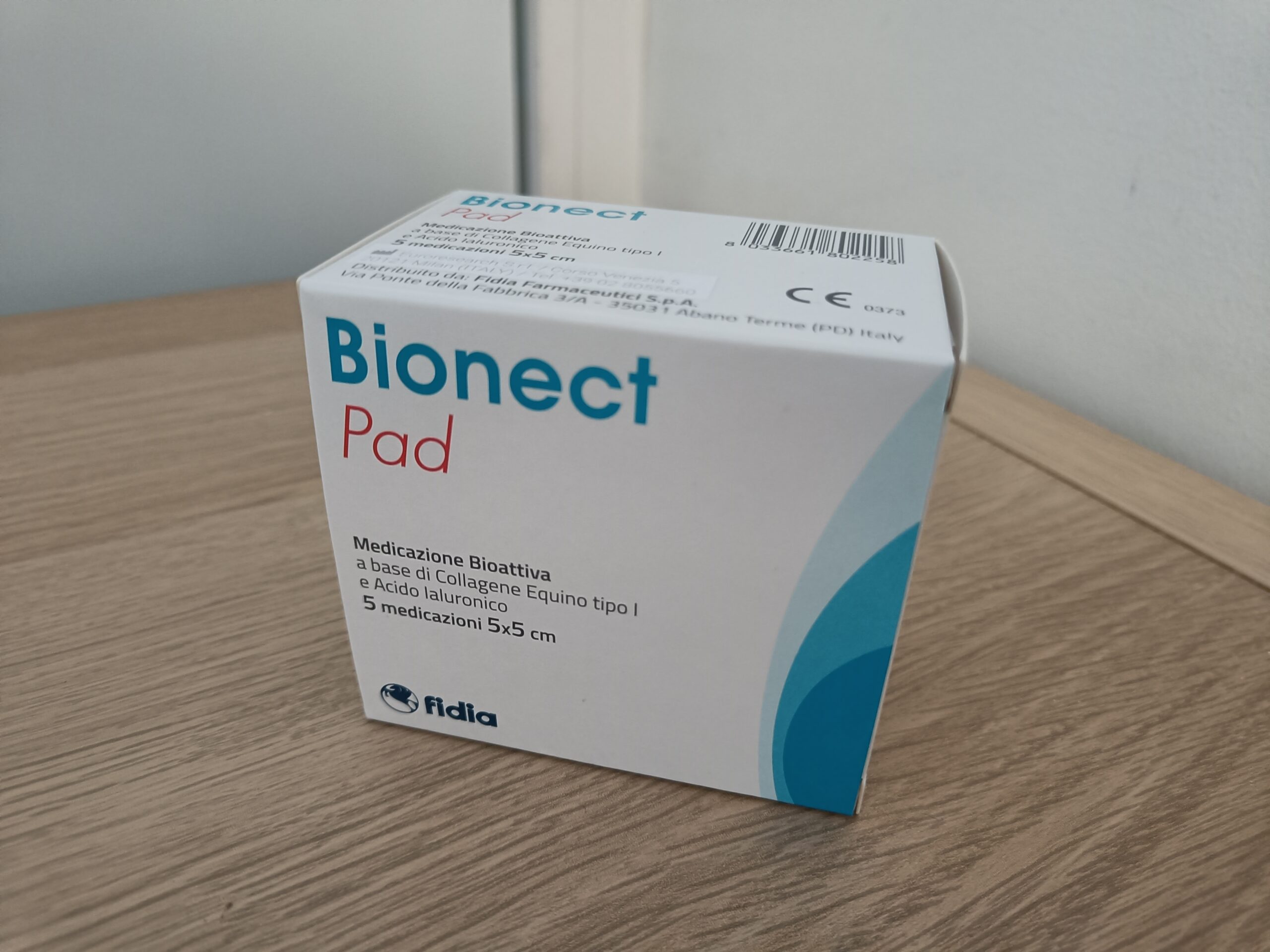 Bionect pad 5 x 5 cm, della linea Bionect, è un dispositivo medico indicato per promuovere il processo di riparazione tissutale, proteggere dalle infezioni e promuovere permeabilità all’ossigeno.