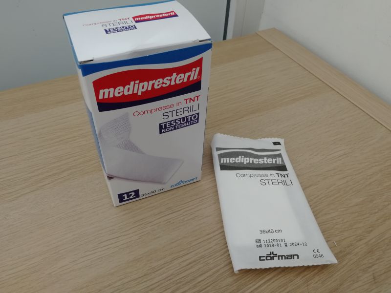 Pulire e disinfettare la parte lesa prima di applicare la compressa. Sostituire almeno una volta al giorno