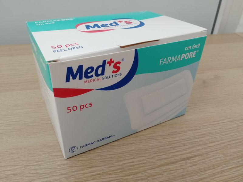 Medicazione adesiva sterile con tampone antiaderente FARMAPORE. Dimensioni cm 6×9