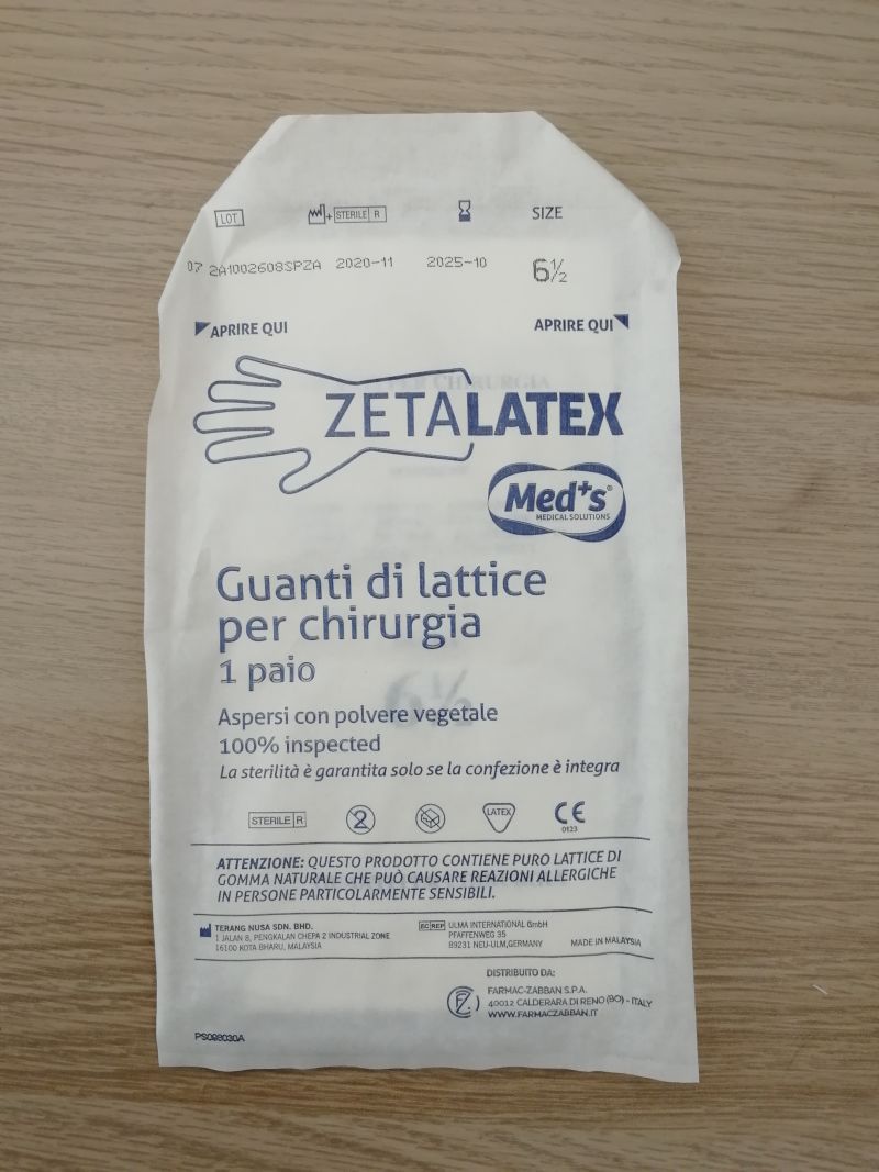 Guanti in lattice per chirurgia aspersi con polvere vegetale