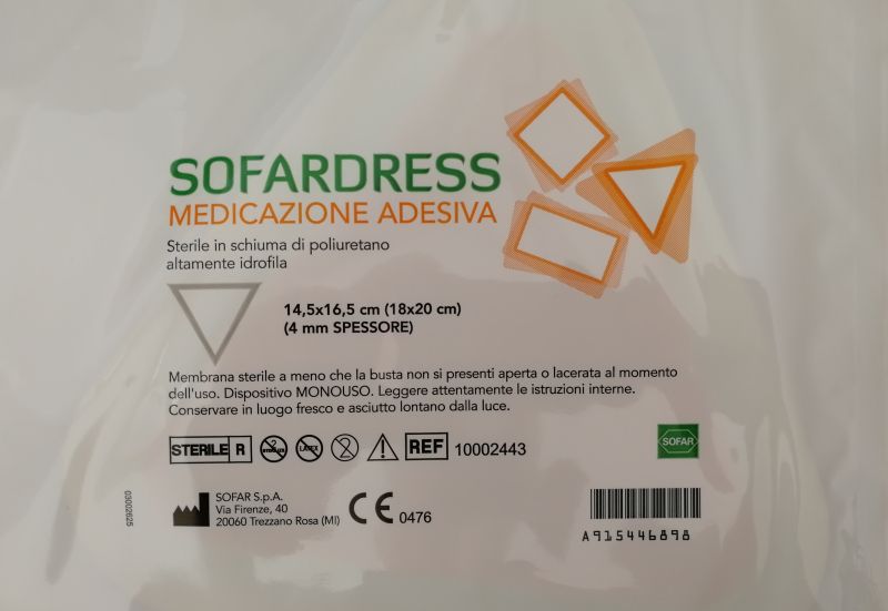 Medicazione adesiva sterile in schiuma di poliuretano altamente idrofila